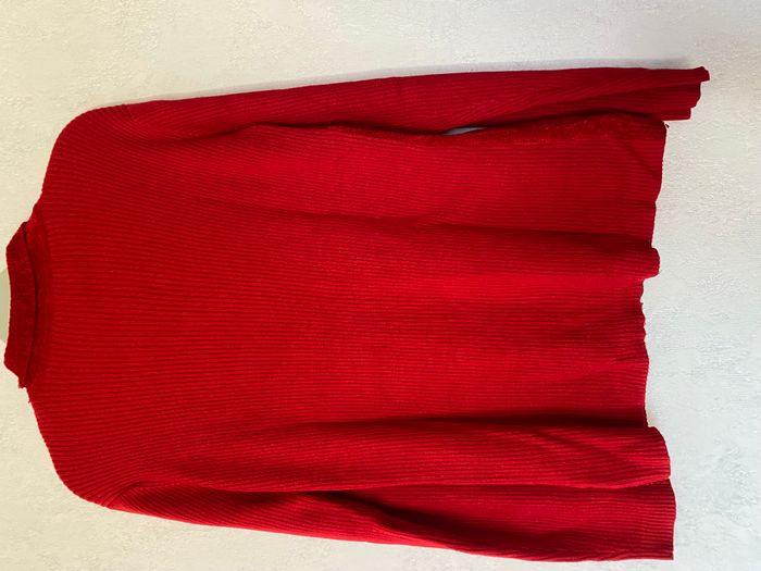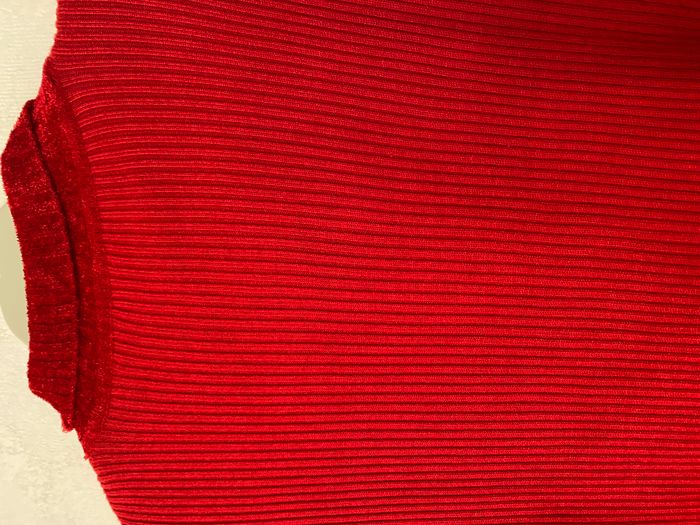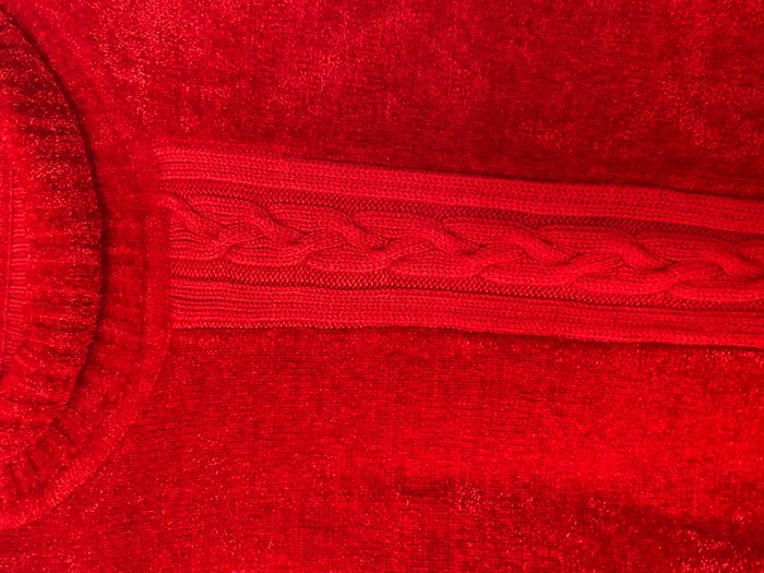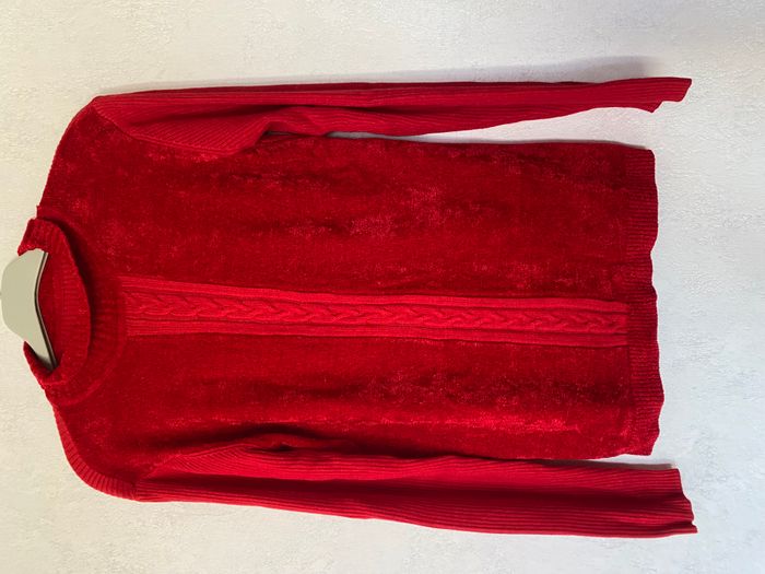 Pull fantaisie col montant. Milieu devant torsade et style velours sur les côtés, arrière à côtes Longueur 61 cm entre aisselles 46 cm
