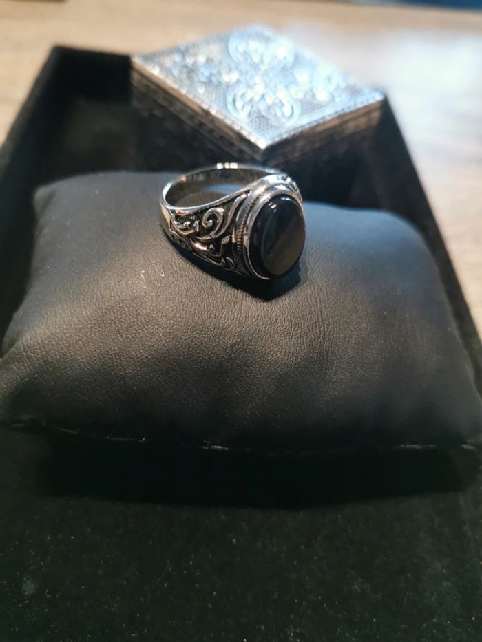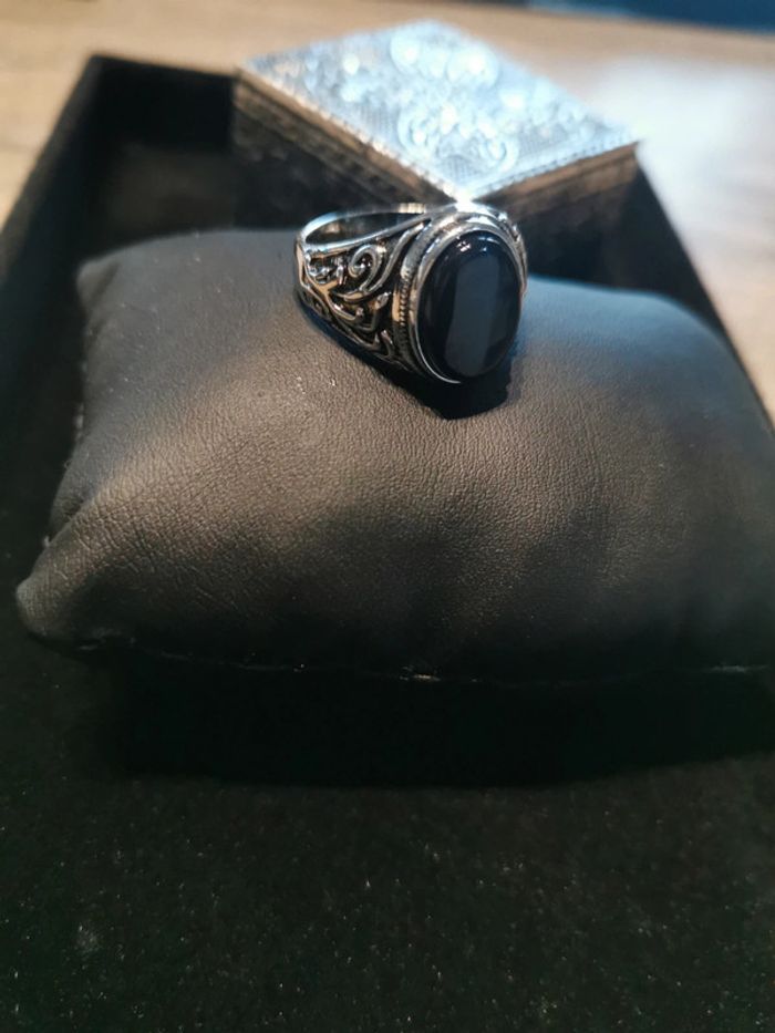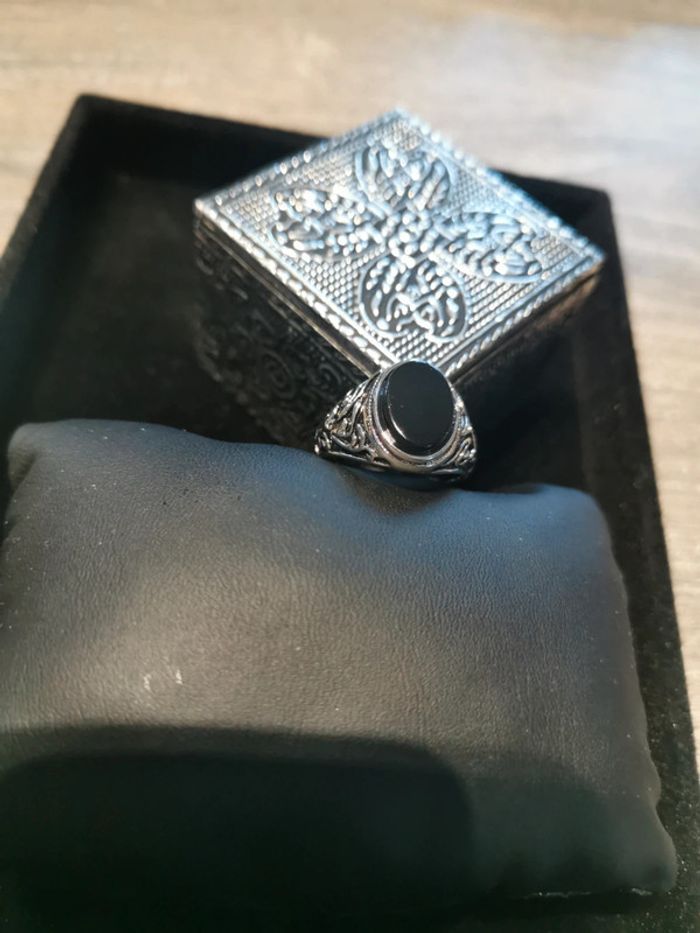 Chevalière homme pierre noire T 10