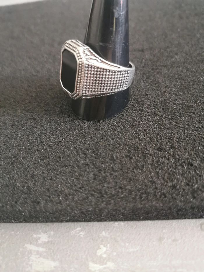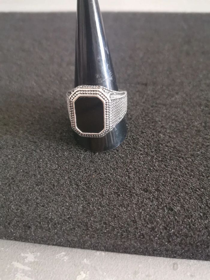 Chevalière homme acier et pierre noire T12 - photo numéro 1