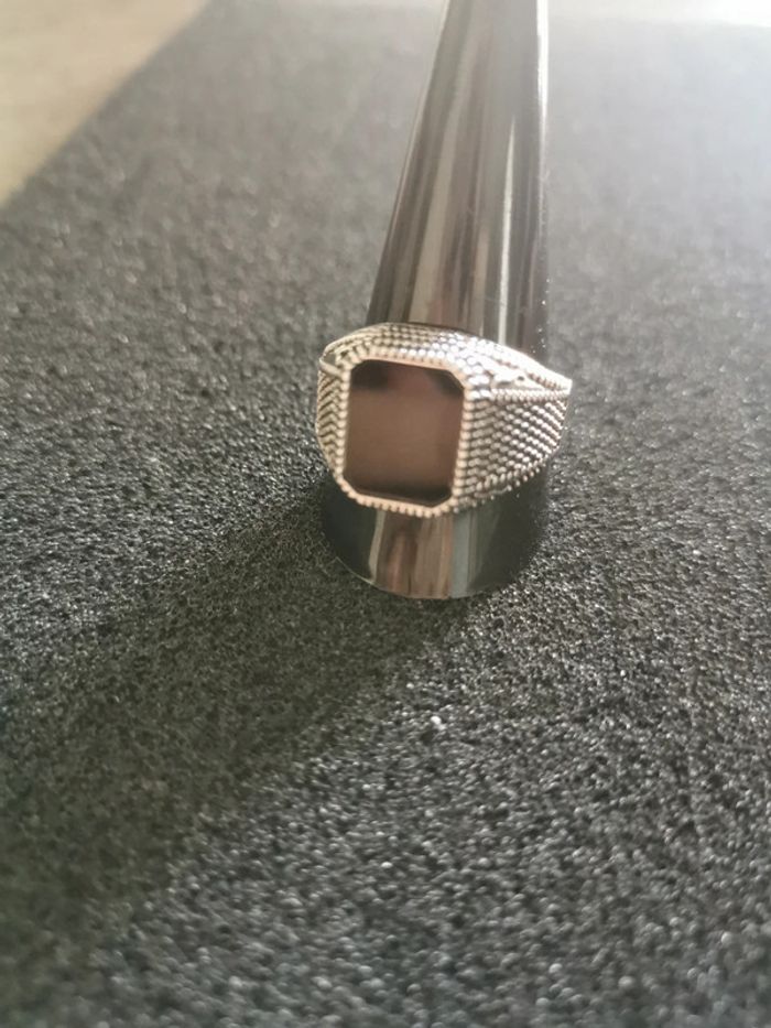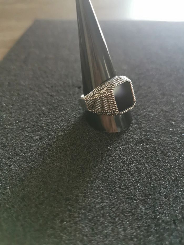 Chevalière homme acier et pierre noire T12 - photo numéro 1