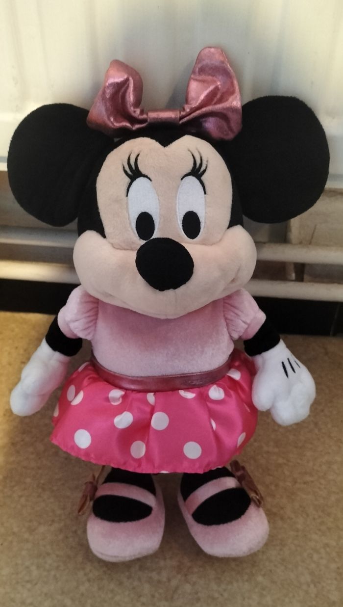 Bien lire l'annonce Voici ma mignonne peluche Minnie ! Cette poupée en peluche représente le personnage emblématique de Disney, Minnie Mouse. Elle est toute douce et moelleuse avec son joli nœud rose sur la tête. Ses grands yeux expressifs et son sourire chaleureux en font un compagnon de jeu parfait pour les enfants. La peluche est en excellent état extérieur, n'ayant été que peu utilisée. Elle mesure environ 35 cm de hauteur et sera un cadeau idéal pour tout fan de minnie. Tient debout Quand on appuie sur la pomme de sa main elle fait des sauts ,mais ce n'est pas régulier , donc je la vend en tant que peluche simple 6€