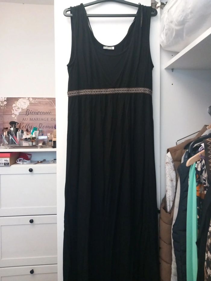 Normalement c'est 1 robe de grossesse Mais peut être mise n'importe quand Avec liseré noir et doré dans le dos Très belle robe #kelly27vêtements38 #kelly27vêtements40