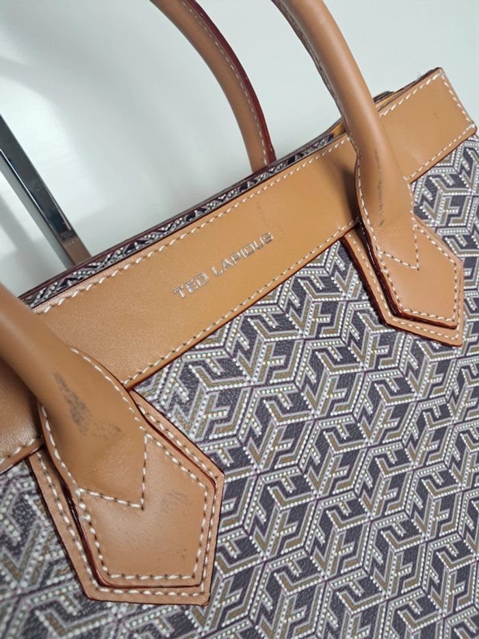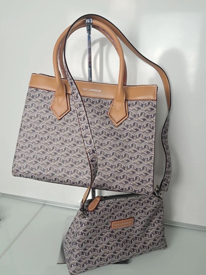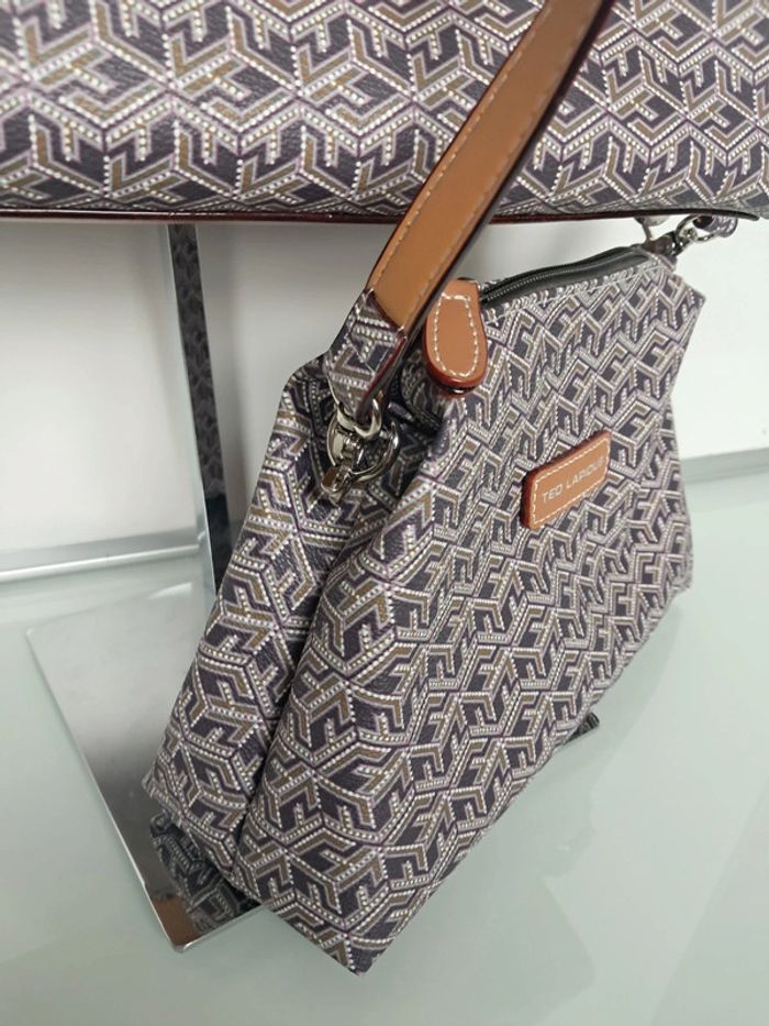 Ted Lapidus très joli sac à main avec sa pochette bandoulière assortie en polychlorure de vinyl et cuir de vachette