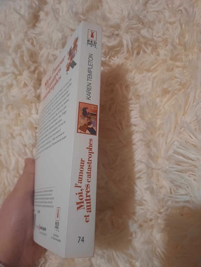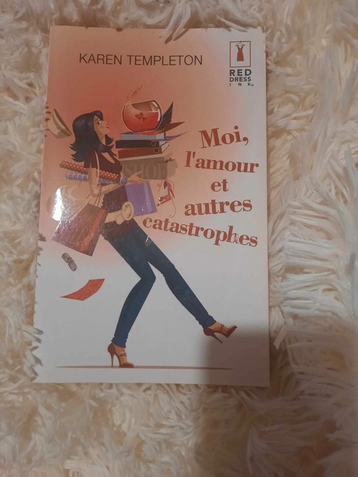 Moi, l’amour et autres catastrophes Maison d’édition : Red dress ink, Harlequin Résumé : Se faire faire abandonner par son fiancé juste devant l’autel n’est jamais une partie de plaisir, mais quand dans la même semaine vous perdez votre appartement et votre emploi, c’est carrément la catastrophe ! Et je sais de quoi je parle puisque c’est très exactement ce qui vient de m’arriver. Au début, j’ai d’ailleurs même cru que jamais je n’allais m’en remettre. Pourtant, quelques centaines de litres de glace Ben & Jerry’s plus tard, j’ai décidé qu’il était temps de contre-attaquer. Il est hors de question que moi, Ginger Petrocelli, New-Yorkaise branchée, décoratrice d’intérieur talentueuse, fille modèle et meilleure amie exemplaire, je finisse ma vie célibataire, dans la chambre d’amis de chez mes parents. Je vais donc me trouver un boulot et un toit au plus vite. Et pourquoi pas l’homme de ma vie par la même occasion ? Pages jaunies, traces de pliure sur la couverture