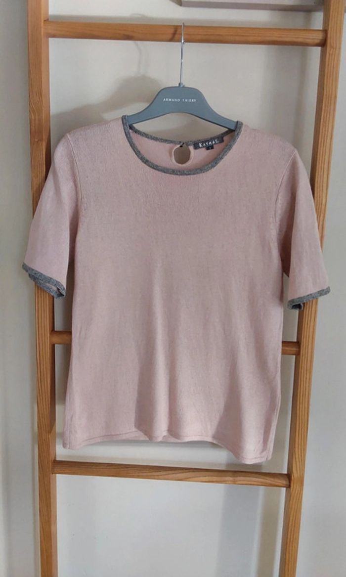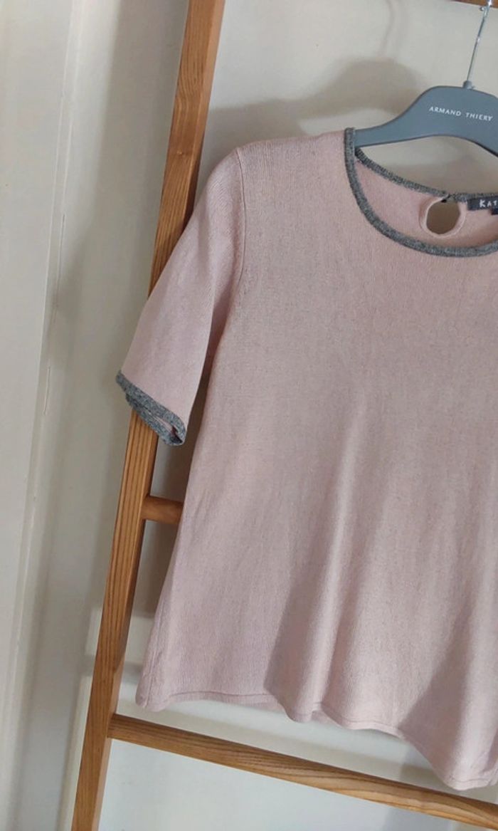 Pull rose tendre  manches courtes Soie et Cachemire Katmaï T 36 - photo numéro 2