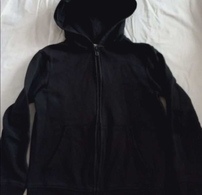 Gilet pour enfant 8-10 ans, en très bon état couleur noir, avec capuche et fermeture éclair ,en coton, marque : H&M.