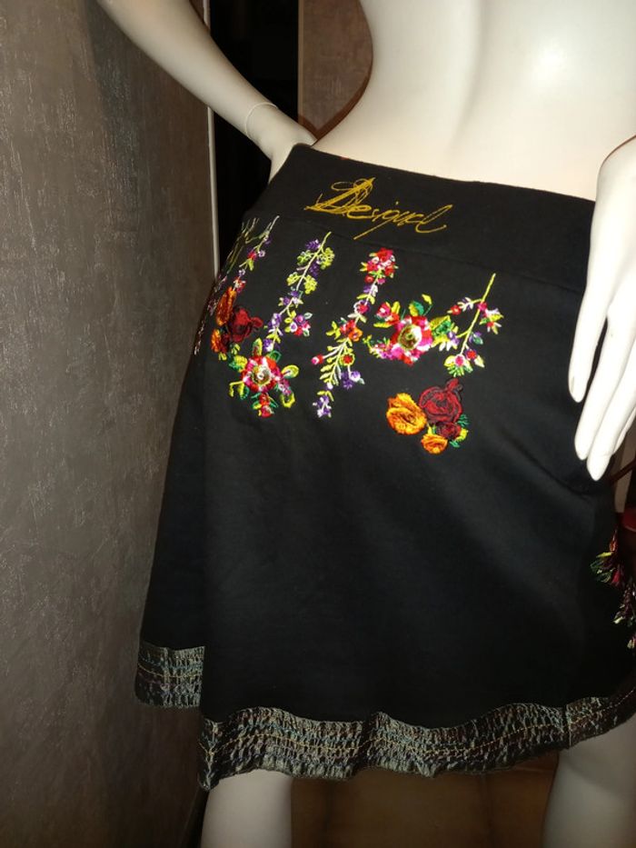 jupe noire avec broderies desigual taille 34/36 - photo numéro 1