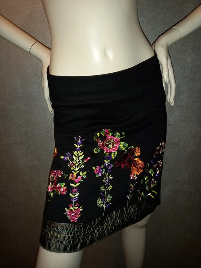 jupe noire avec broderies desigual taille 34/36 - photo numéro 2