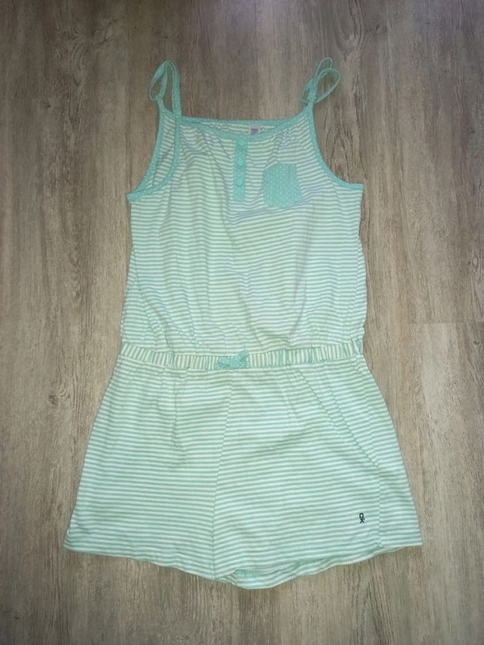 combishort rayé bleu clair et blanc okaïdi taille 12 ans, très légèrement jauni sur l'élastique à la taille ( élastique détendu mais ça ne gène en rien pour le porter) #12anspetitefee3