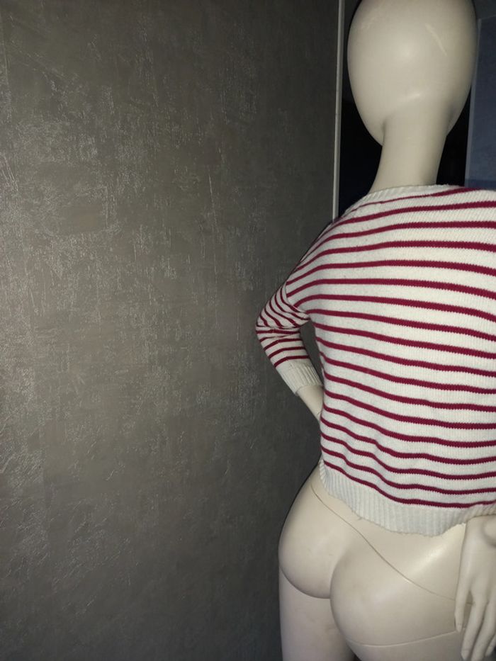 pull court rayé bordeaux et blanc jennyfer taille 34 - photo numéro 2