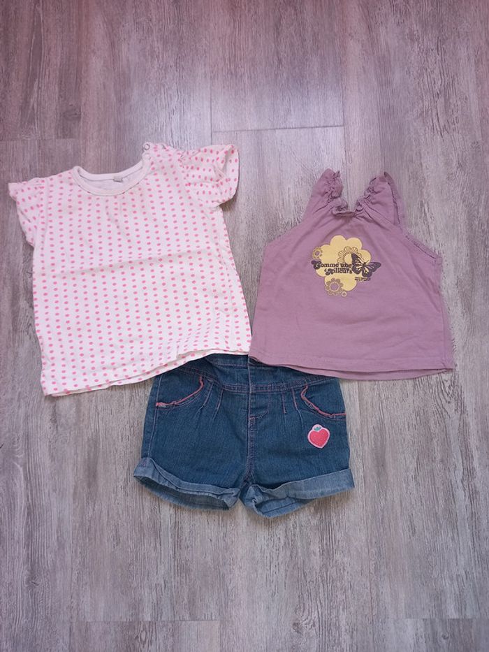 short en jeans avec tee shirt et top taille 12 mois #12moispetitefee3