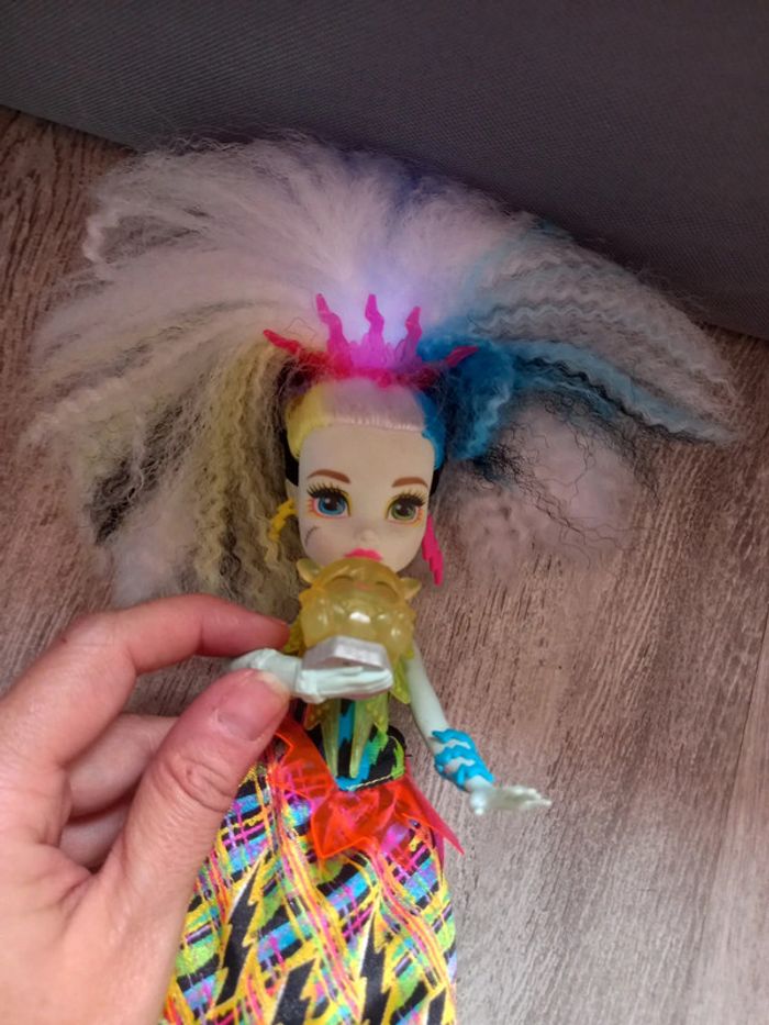 poupée monster high frankie stein voltastique lumière et son, une bride de sa chaussure droite s'est cassé mais elle peut quand même les mettres, son animal et ses cheveux s'illumine, hauteur 28 cm, piles fournies #jouetpetitefee3