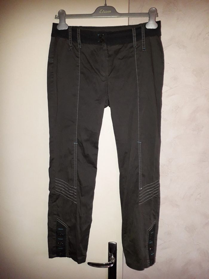 pantalon gris la mode est à vous taille 38, largeur à la taille 40 cm, longueur de l'entre jambe à en bas 65 cm, matière 98 % coton et 2 % élasthane #38petitefee3