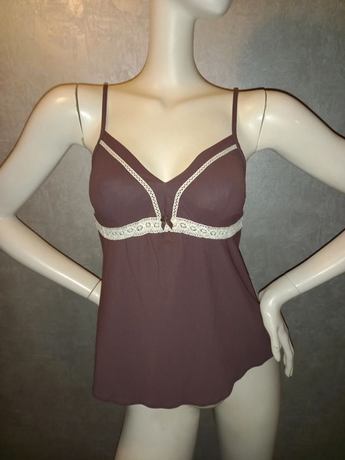top etam avec dentelle blanche taille 36, largeur aisselle à aisselle 37 cm, longueur du dessous de bras à en bas 35 cm, étiquette de marque et de composition coupée, matière élasthane, bretelle réglable en longueur #36petitefee3