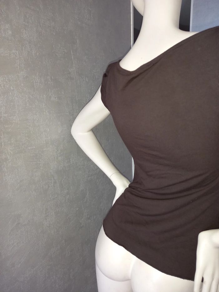débardeur marron avec roses morgan de toi taille 38, largeur aisselle à aisselle 41 cm, longueur du dessous de bras à en bas 38 cm, étiquette morgan coupée, étiquette composition coupée, matière élasthane #38petitefee3