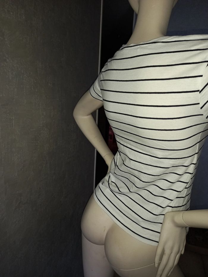 tee shirt rayé inscription doré mango taille 36/38 - photo numéro 3