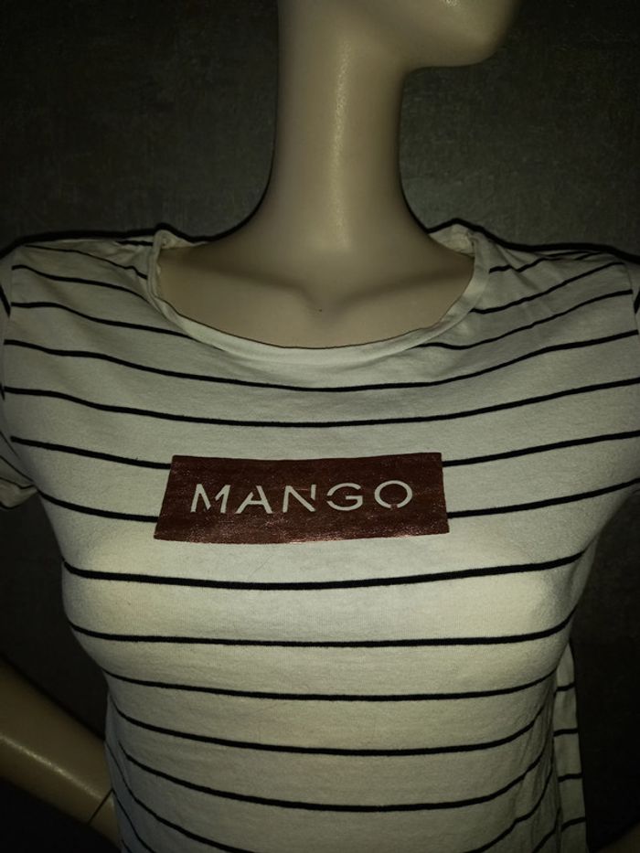tee shirt rayé inscription doré mango taille 36/38 - photo numéro 1