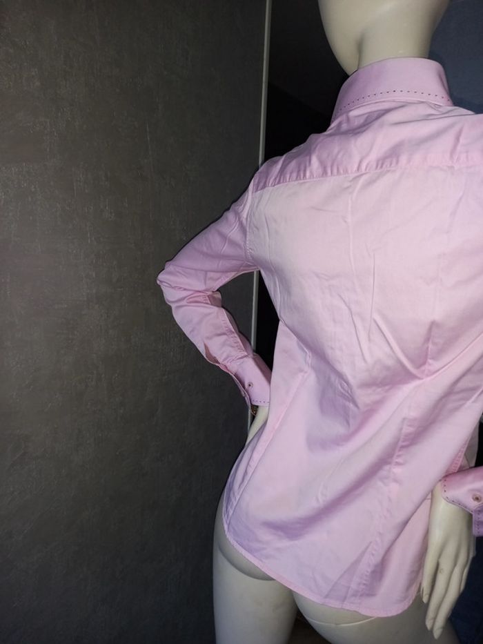 chemise rose claire stever line taille 38, forme cintré, matière 100% coton, largeur aisselle à aisselle 46 cm, longueur du dessous de bras à en bas 38 cm #38petitefee3
