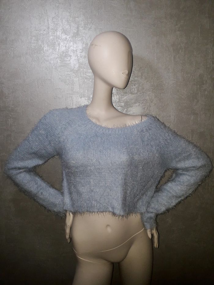 pull court bleu clair tout doux mim, marqué taille M et taille 38/40 #38petitefee3