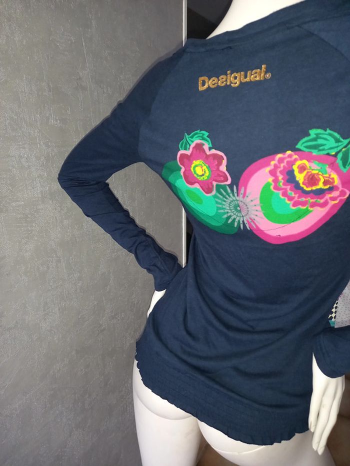 tee shirt manche longue bleu marine et coloré desigual taille 38/40 - photo numéro 2