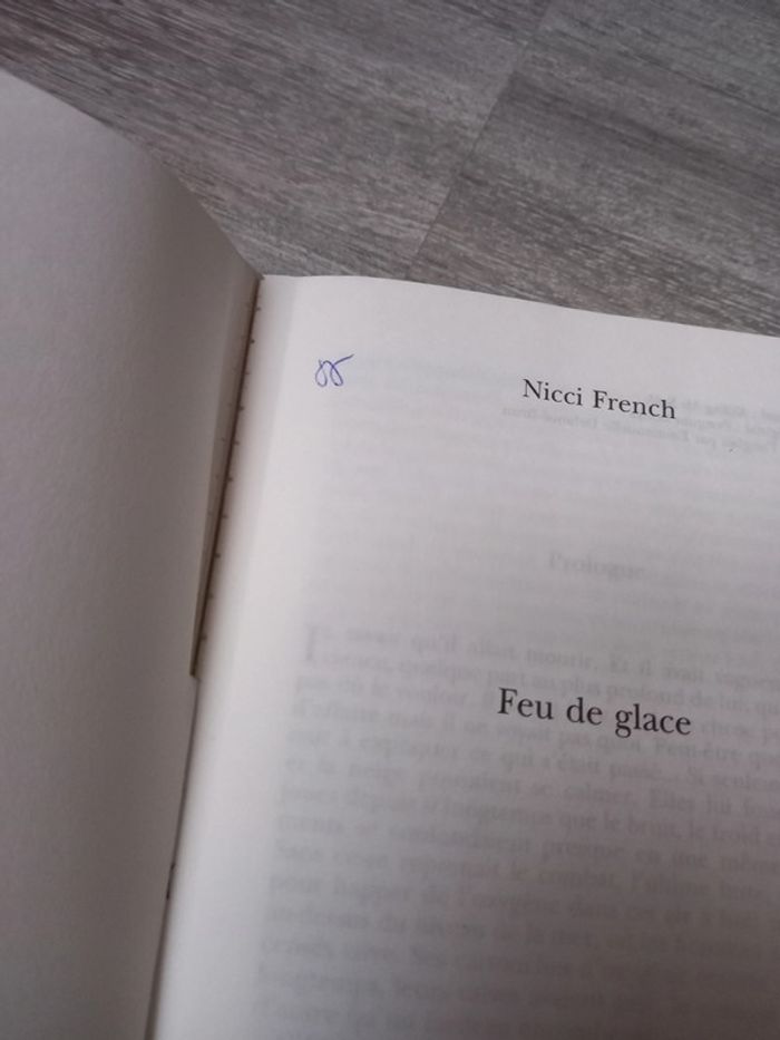 livre feu de glace de nicci french, grand format, 330 pages, petit trait de stylo bille en haut de la première page ( photo sur l'annonce) #livrepetitefee3