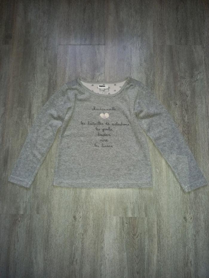 haut de pyjama en velours gris coeur la halle taille 8 ans #8anspetitefee3