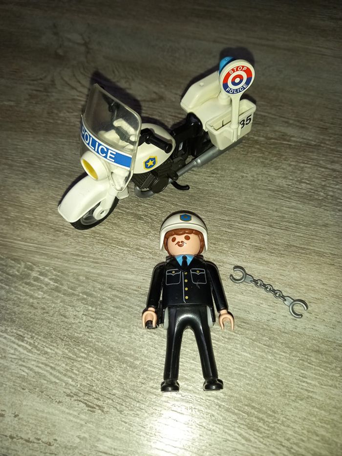 playmobil figurine policier avec moto et accessoires, il manque le pistolet et un cache valise arrière de la moto, j'ai rajouté une paire de menotte #jouetpetitefee3