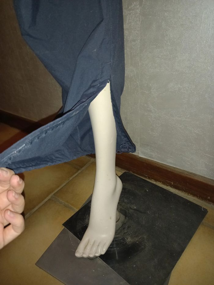 pantalon jogging bleu marine domyos decathlon, marqué taille M et taille 38/40, élastique à la taille, fermeture pour ouvrir en bas des jambes, matière 100 % polyester, pas de doublure #38petitefee3