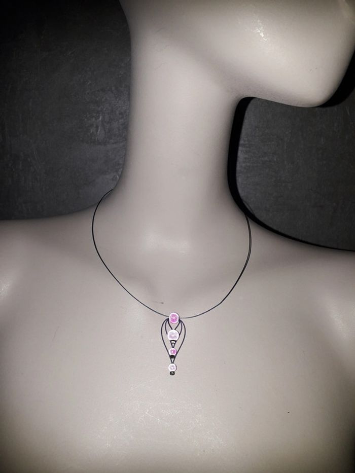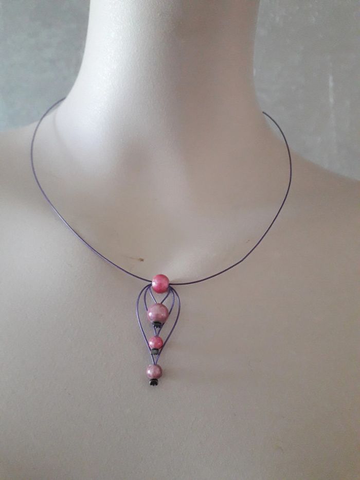 collier ras le cou violet avec perles roses neuf - photo numéro 2