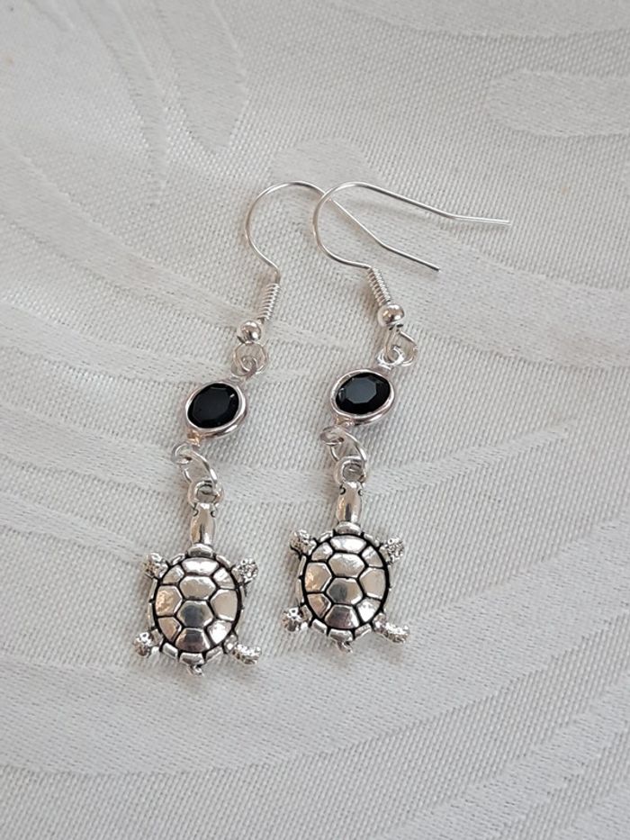 Bonjour propose boucle d'oreille tortue vert
