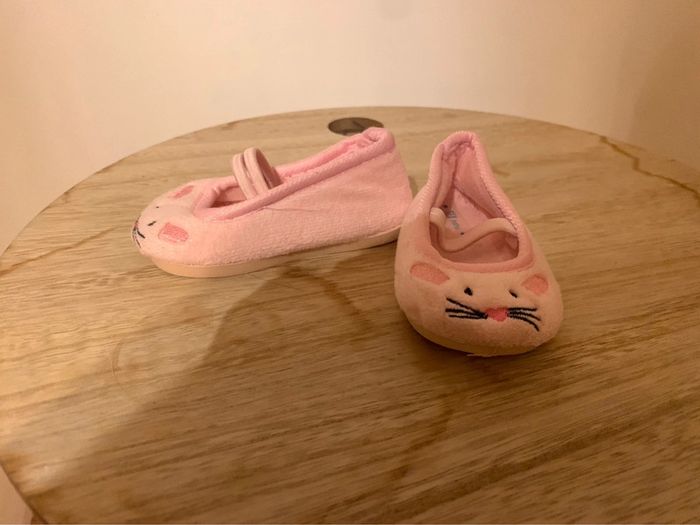 chausson dessin petit souris en taille 19. Très doux et agréable pour bébé. Très bon état. Il y a deux petites taches sur un chausson pas vraiment visible.