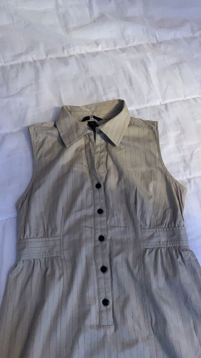 robe cintrée légèrement trapèze boutonnage col chemise crème à rayures noires sans manches au dessus du genou h&m taille 36