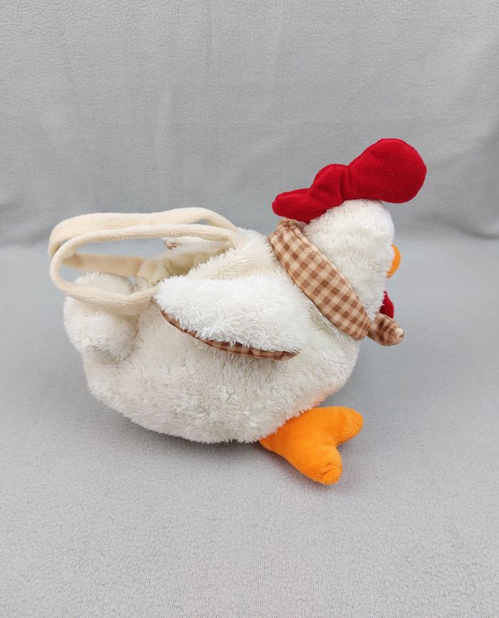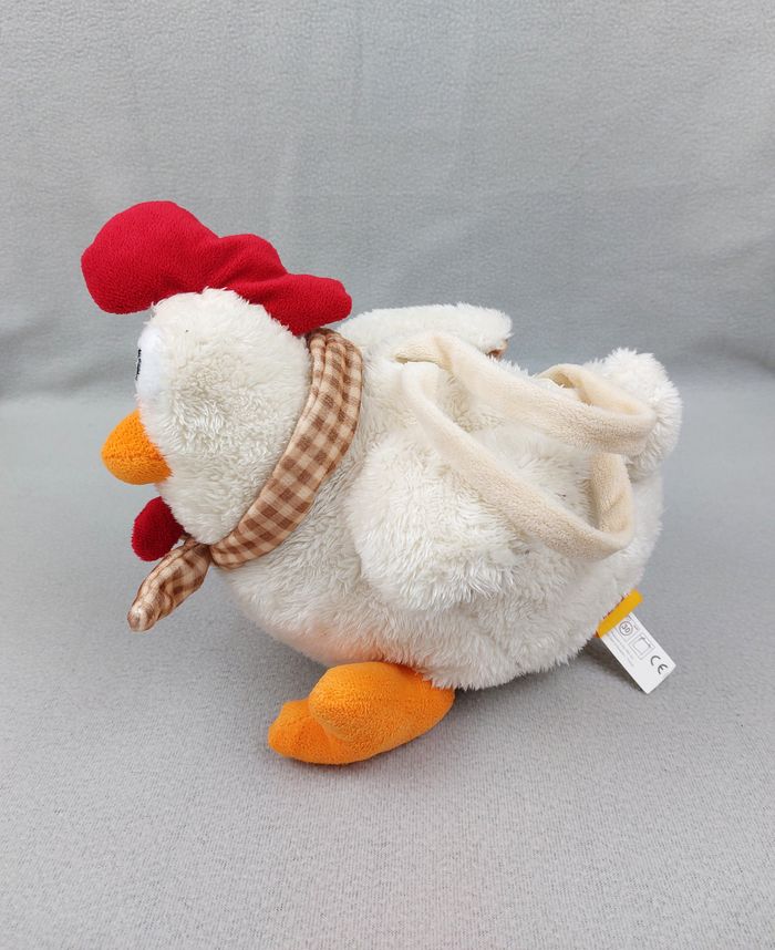 Peluche sac anse doudou coq poule blanche FIZZI env. 30 cm foulard carreaux - photo numéro 5