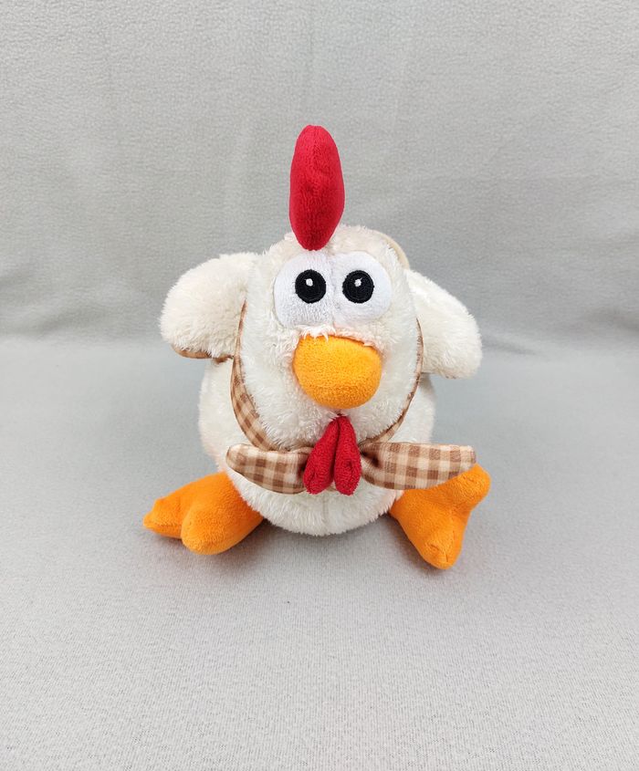 Peluche sac anse doudou coq poule blanche FIZZI env. 30 cm foulard carreaux - photo numéro 1