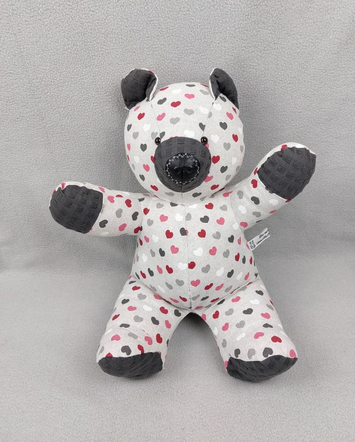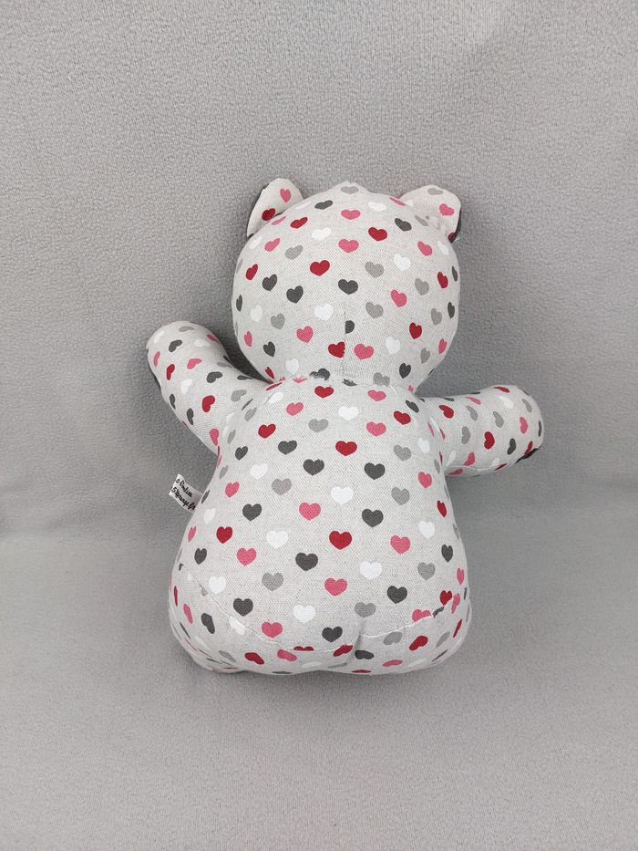 Peluche ours tissu création 40 cm les ours d'Evalisa cœurs multicolores - photo numéro 4