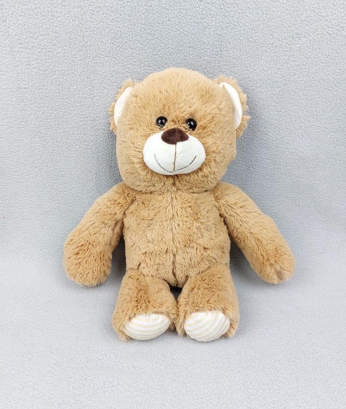 Peluche doudou ours brun marron pattes et oreilles rayées blanc beige 30 cm - photo numéro 1