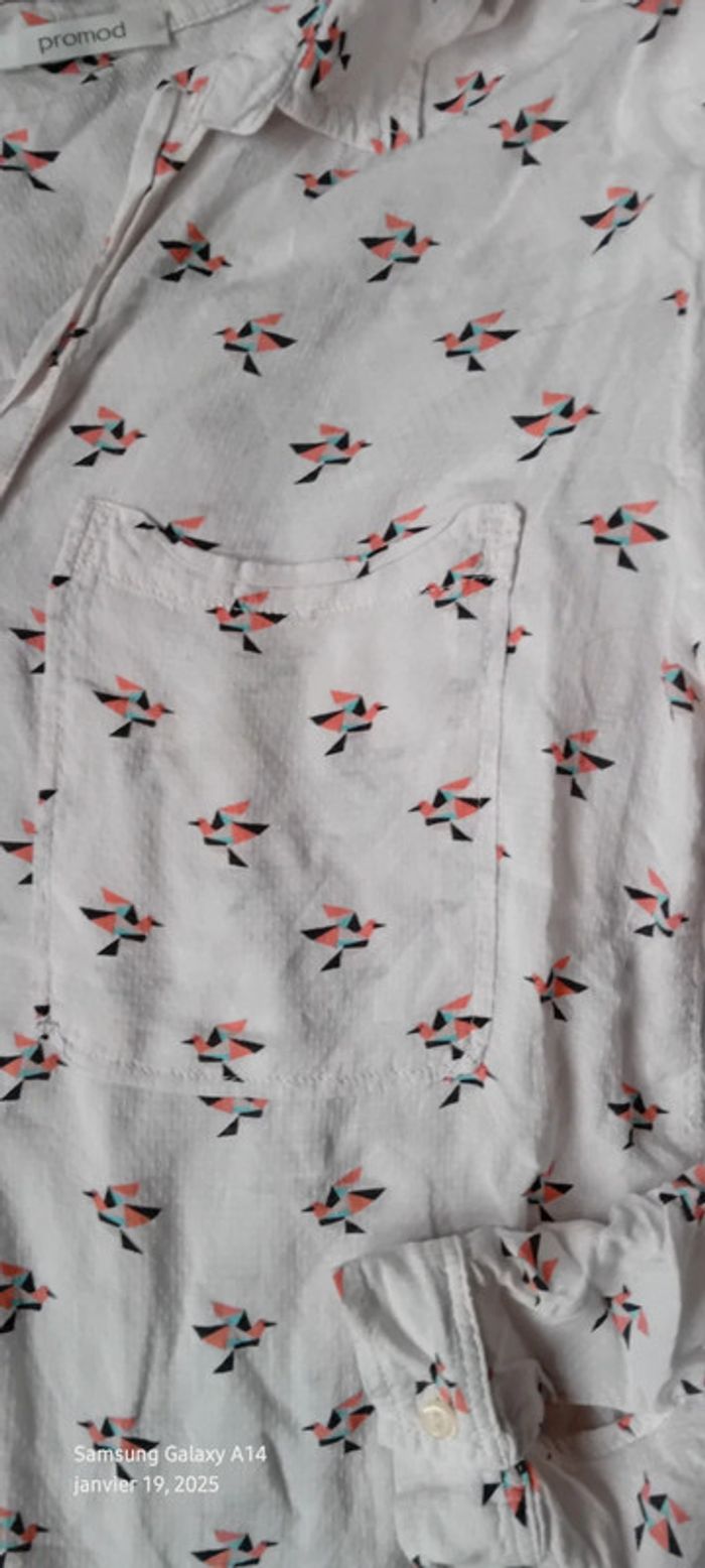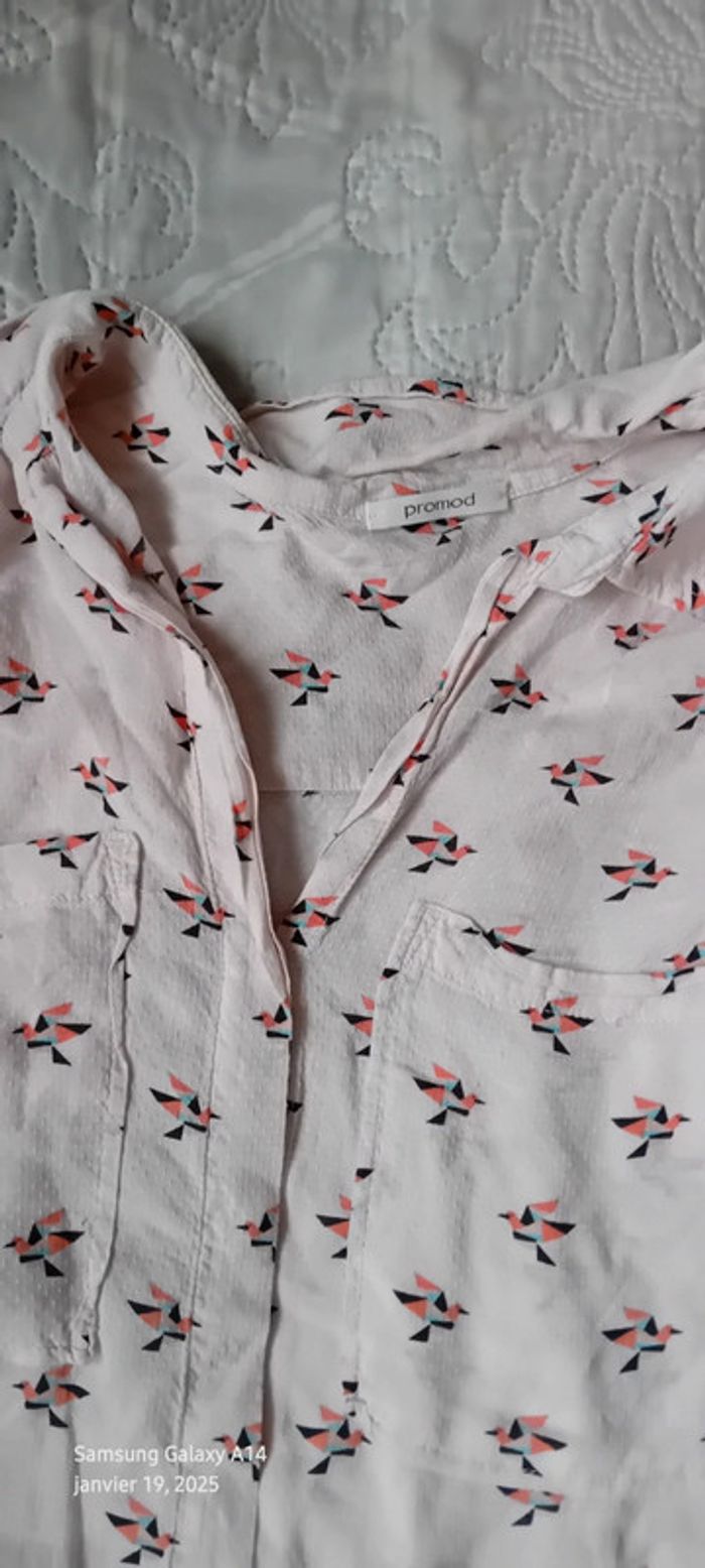 Blouse légère motif oiseaux en origami rose femme 36 promod - photo numéro 20