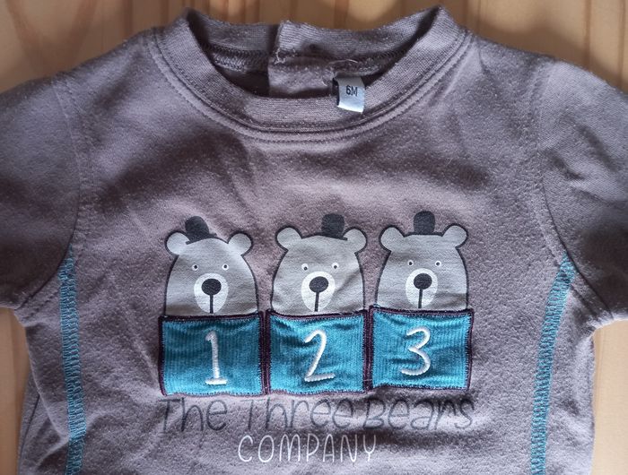 Vends t-shirt à manche longue pour bébé motif ours Taille 6 mois (68 cm) de marque Ma boutique Plus en très bon état .