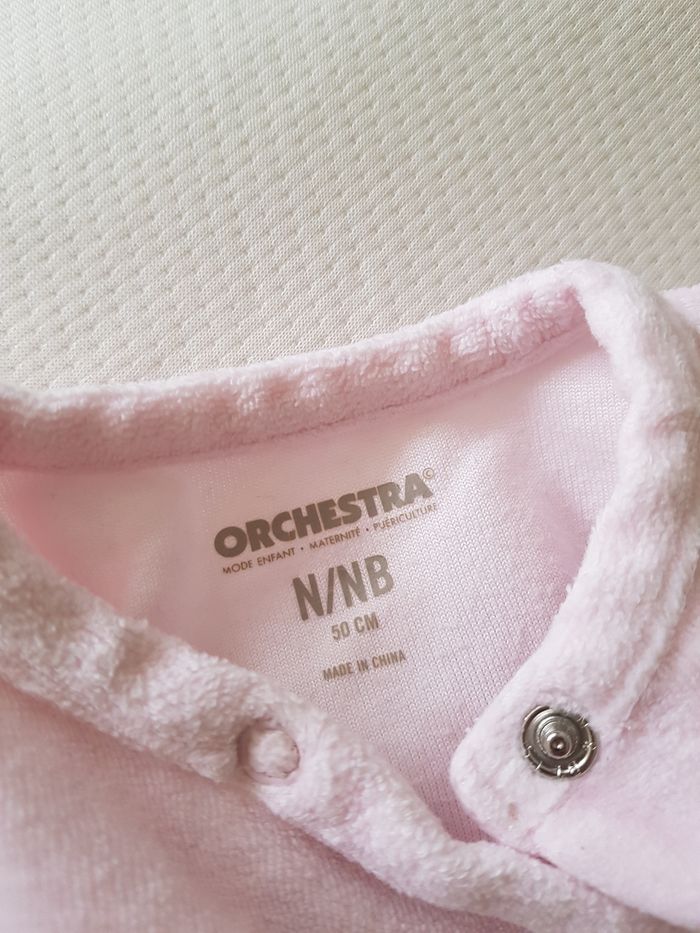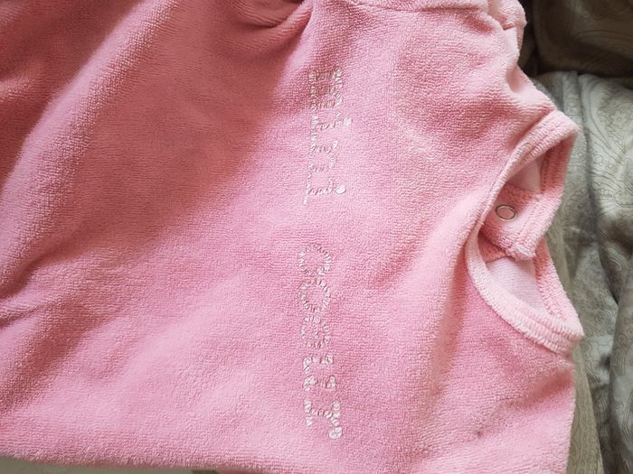 3 bodys naissance. 2 grenouillères pyjamas (naissance et 1 mois). 2 salopettes (1 mois) Grenouillère rose avec écriture un peu effacée