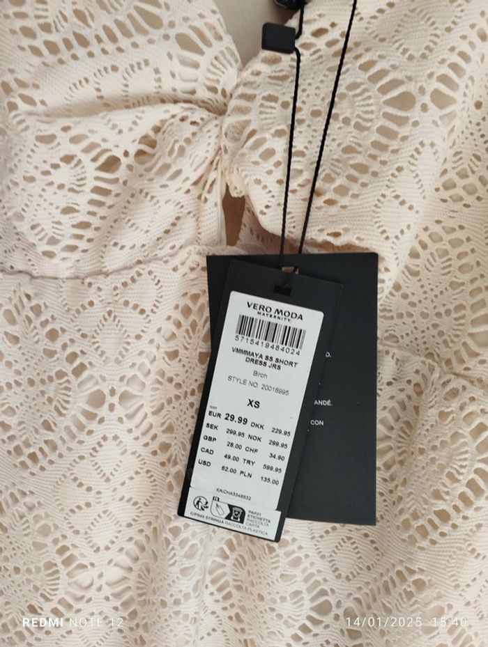 Robe Vero Moda maternité écru dentelle doublé taille XS neuf étiquettes - photo numéro 1