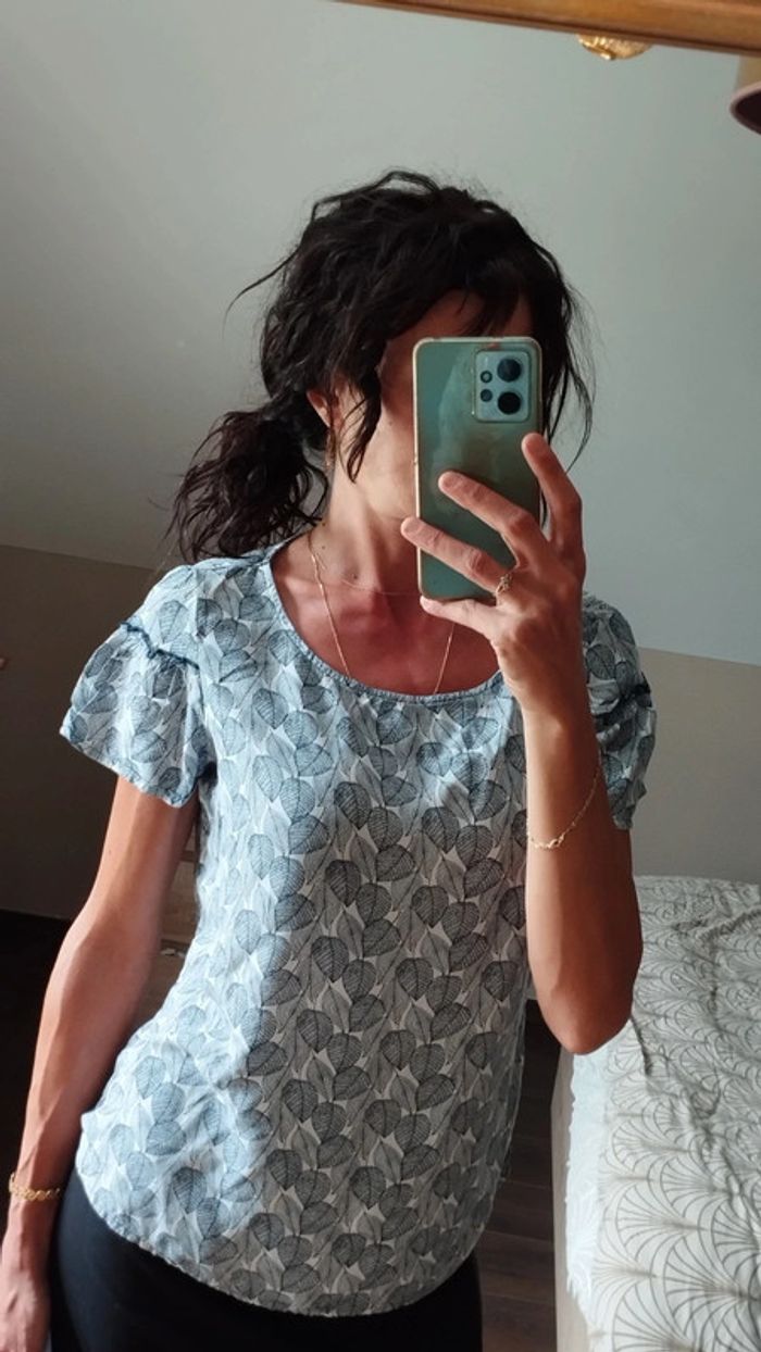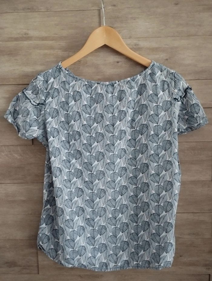 Blouse manches courtes EDC motif feuillage TS très bon état Longueur 59cm Largeur épaule 37cm Largeur aisselles 48cm