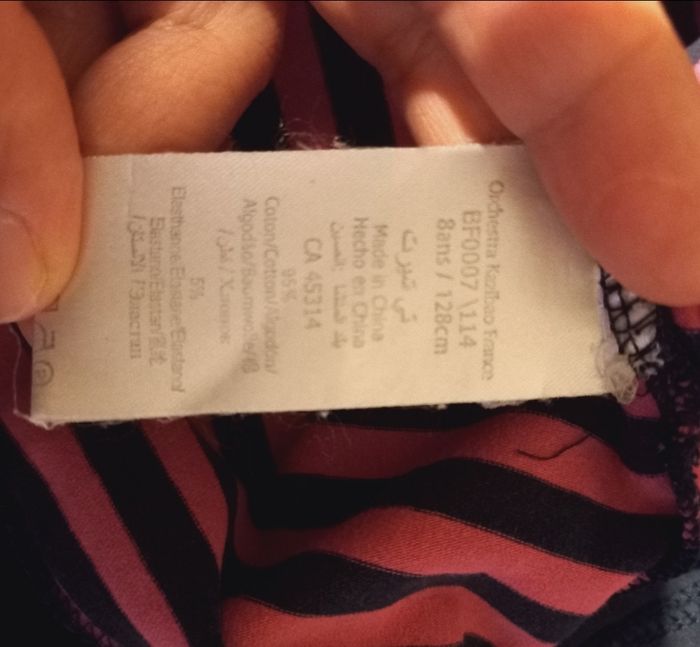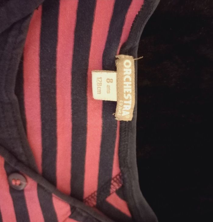 T-shirt pour enfant 8 ans, en très bon état, couleur rose et violet, manches longues, marque : Orchestra,95% coton et 5% elasthanne.