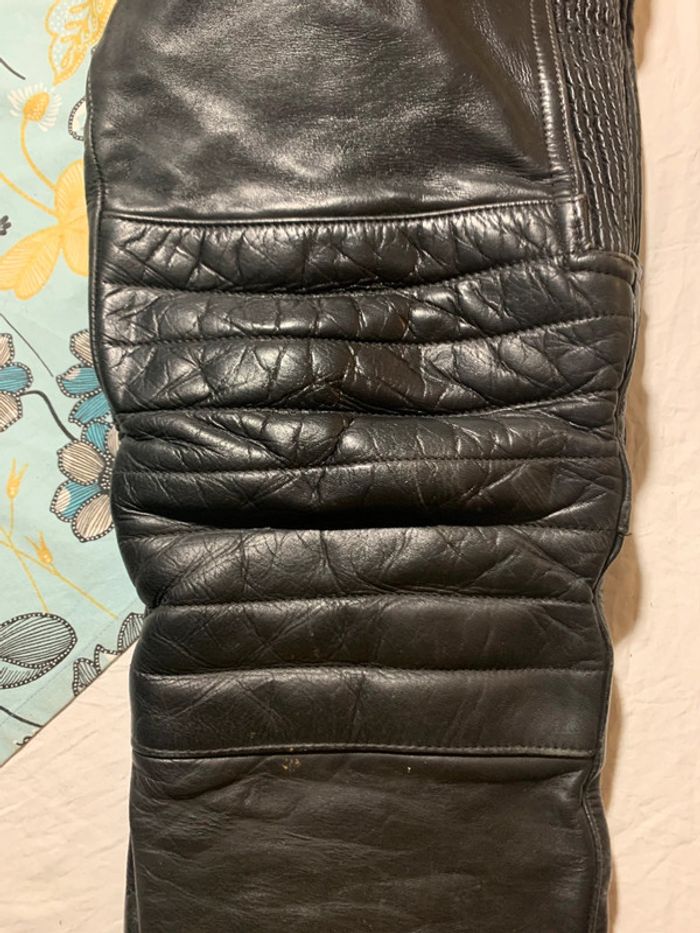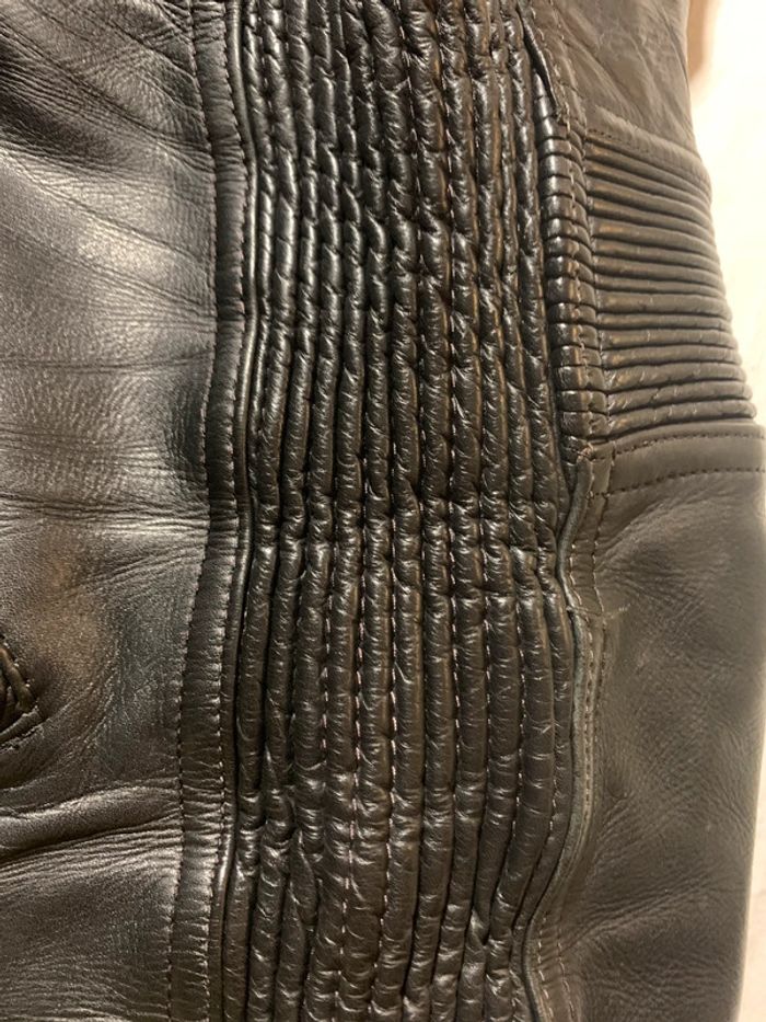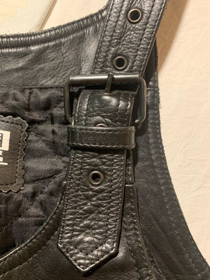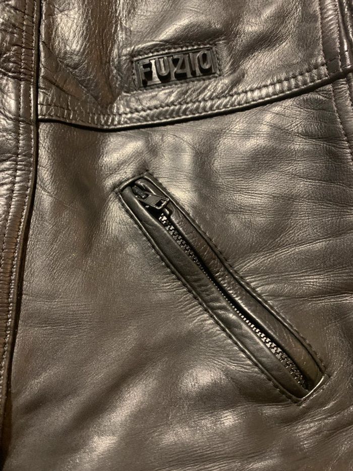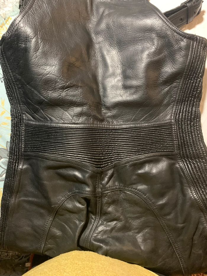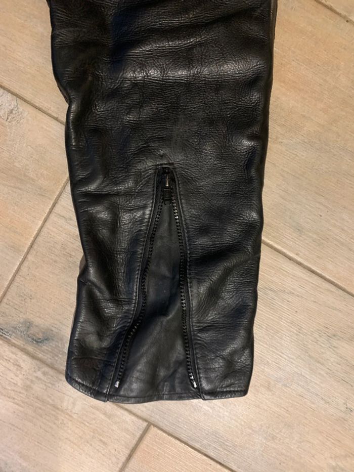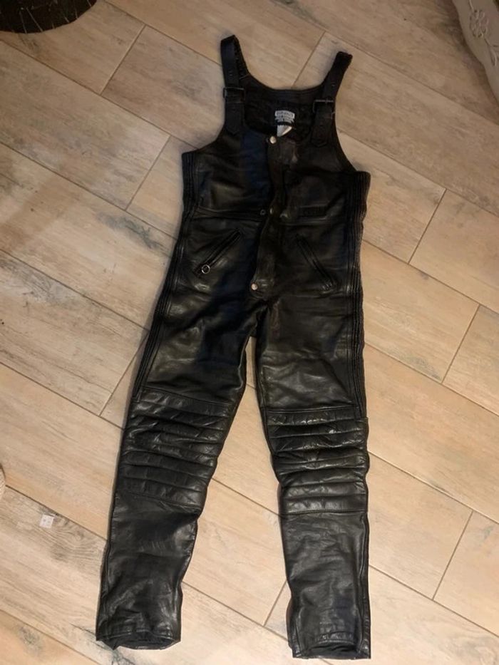 Salopette en cuir qualité supérieure moto biker FUZIO Taille 38 En excellent état Extensible sur les côtes et bas du dos Réglable au épaules 1 poche intérieur + 2 extérieur avec zip Entièrement doublée Zip au bas des jambes Renforts aux genoux Marque fuzio La salopette a toujours été entretenue régulièrement (cirage /creme d’entretien de haute qualité ) Svp consultez toutes les photos Envoi rapide