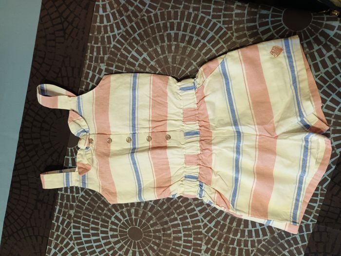salopette fille 24 mois couleur blanc motif rayures rose et bleu marque sergent major neuf sans etiquettes