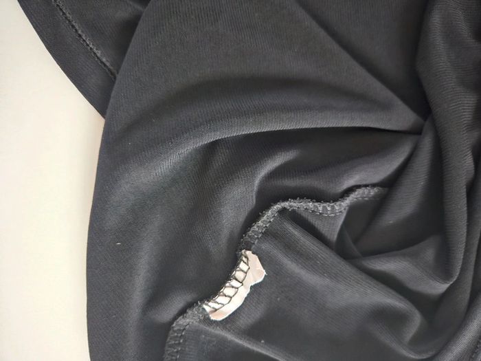 Matière légère fluide un peu comme du lycra extensible. Portée mais elle reste en très bien état. Pas d'autre étiquette mais les dimensions se trouvent sur les photos Manches 3/4