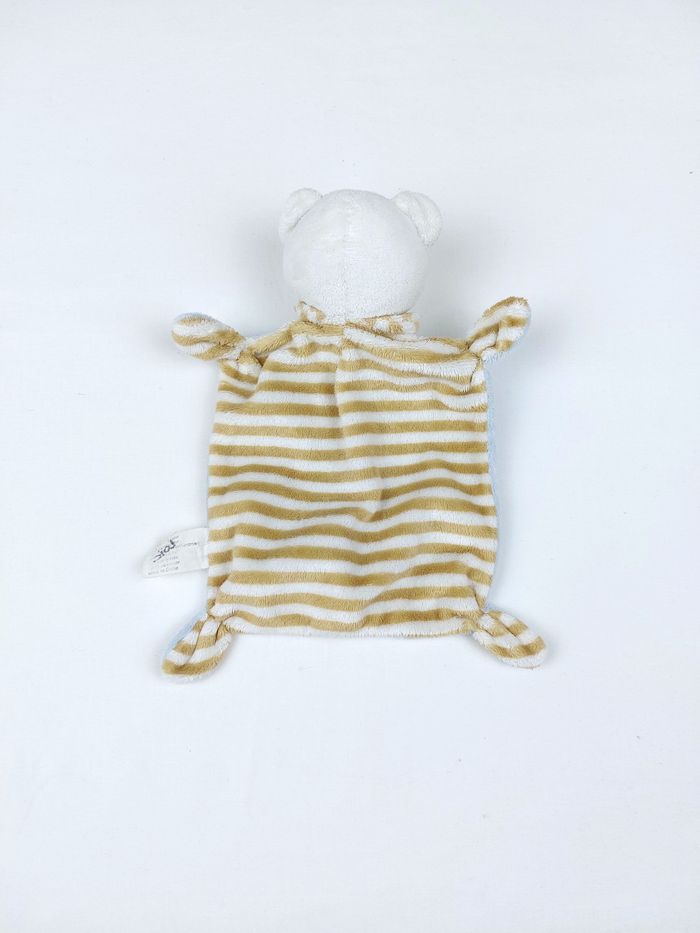 Doudou plat ours câlin bleu VETIR GEMO rayures blanc marron - photo numéro 2