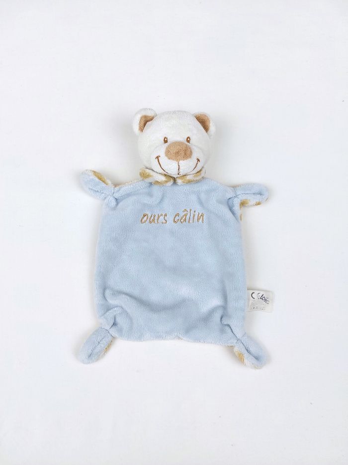 Doudou plat ours câlin bleu VETIR GEMO rayures blanc marron - photo numéro 1