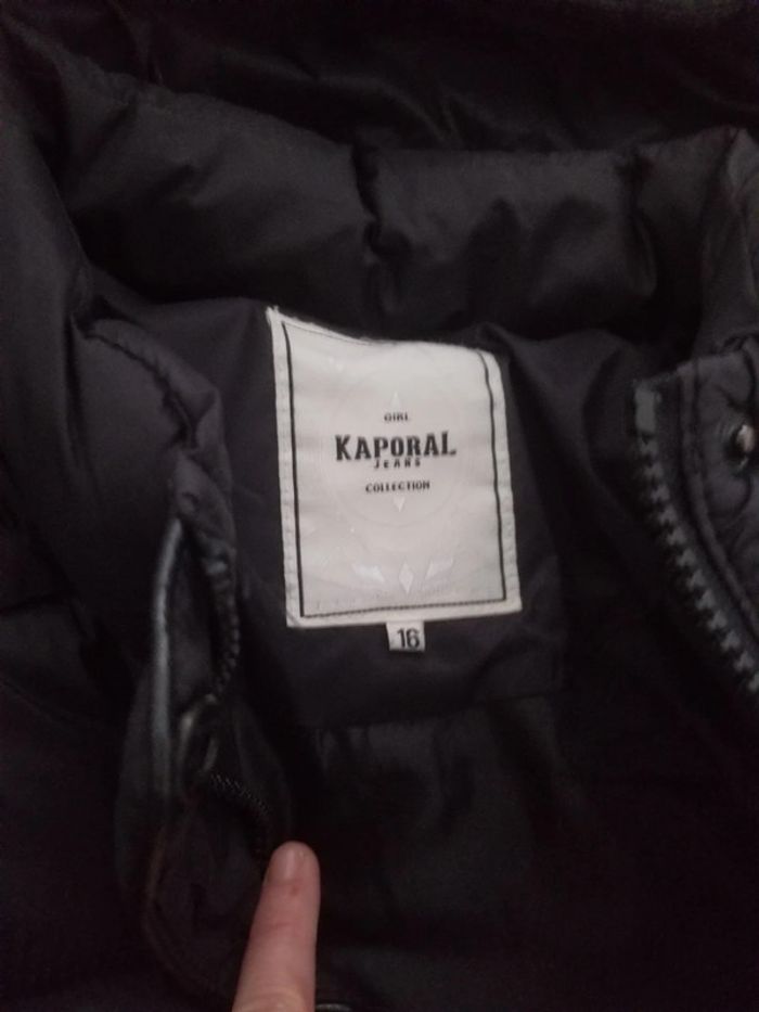 Doudoune kaporal 16ans noir Peu porté état neuf. Fermeture zippé, bien épaisse, chaude. Manque 2 boutons