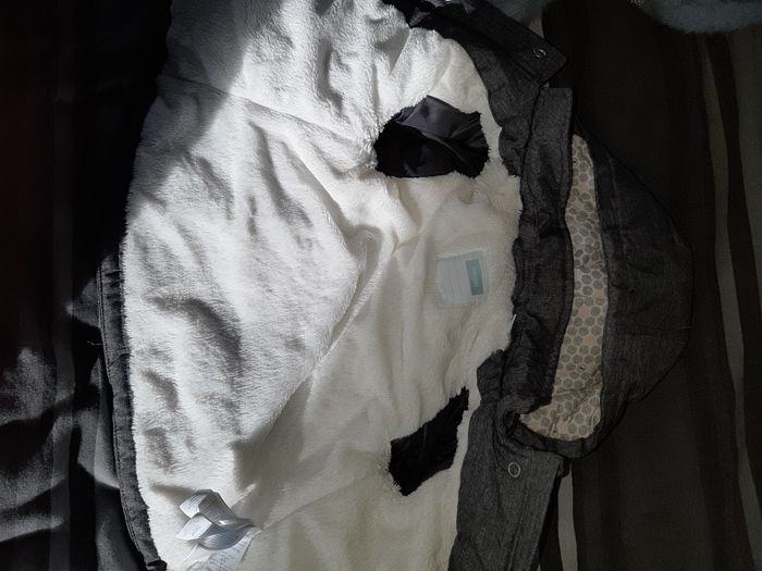 Manteau d'hiver marque obaibi taille 12 mois gris fourré a l'intérieur.