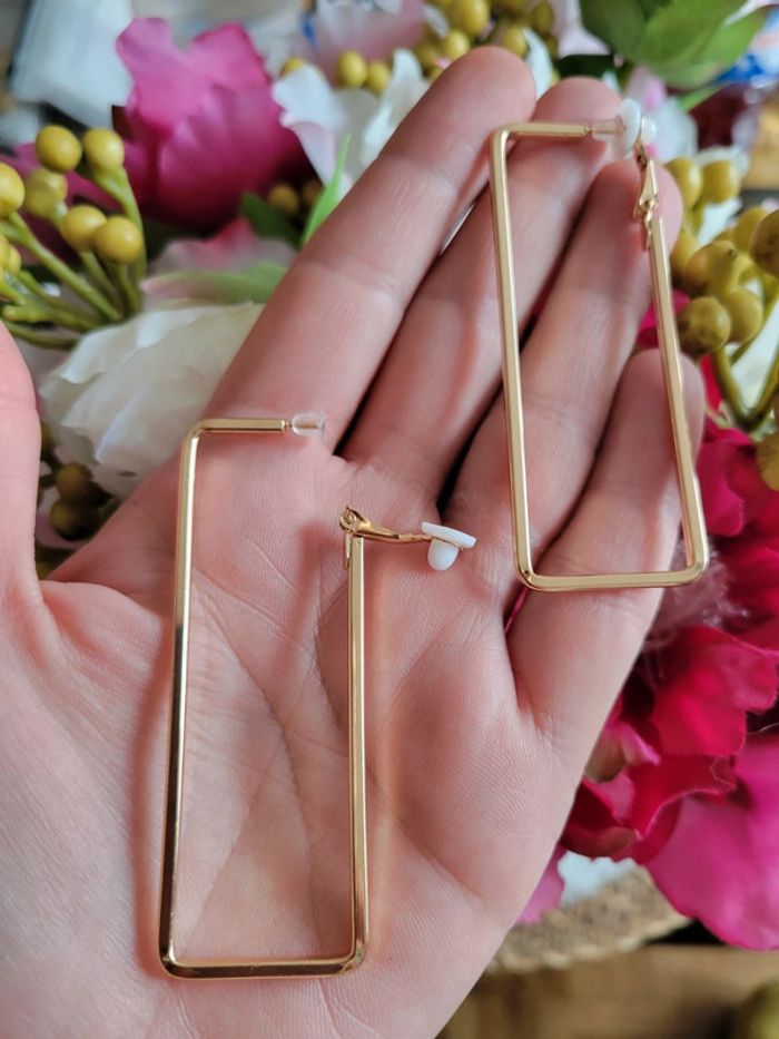Clips créoles rectangle acier gold - photo numéro 7